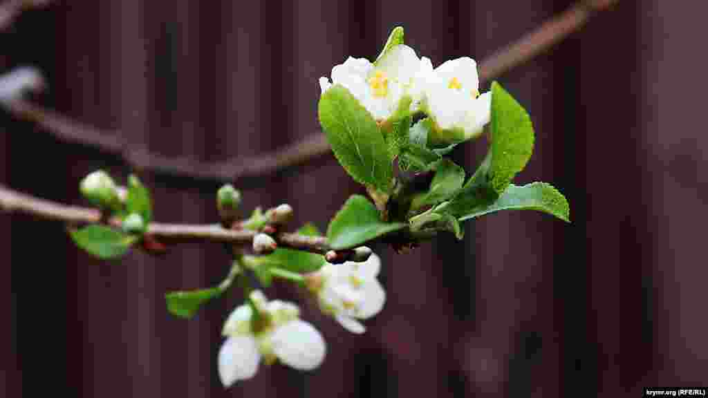 В одном из палисадников Симферополя начали цвести плодовые деревья. Пока что термометр показывает 10°C, однако уже через пару дней синоптики прогнозируют похолодание до -6°C.