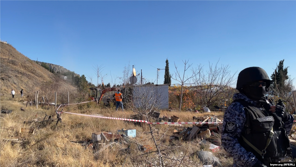 Снос строения начали в присутствии российских полицейских, судебных исполнителей и сотрудников ОМОН. Личные вещи из дома вывезли.