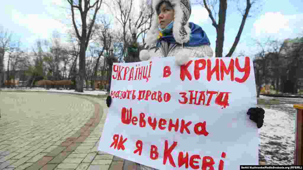 В Киеве в парке имени Тараса Шевченко в день рождения Кобзаря 9 марта прошла акция солидарности с Крымом. На акции со словами поддержки к жителям аннексированного Россией Крыма обратились освобожденные политические заключенные, крымские журналисты и общественные деятели, правозащитники.