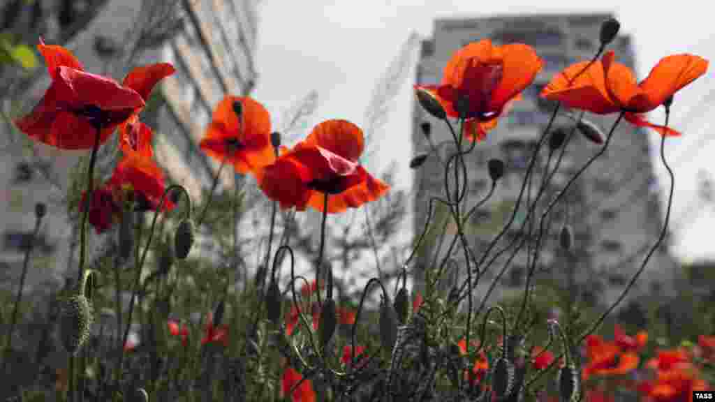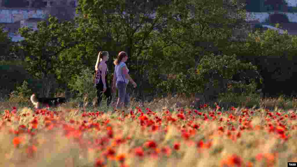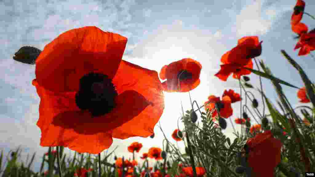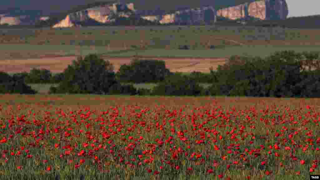 В конце мая в разных уголках Крыма зацветают маки. В этом году цветы распустились в отдельных теплых местах. Одно из маковых полей раскинулось у села Холмовка вдоль дороги на пещерный город Эски-Кермен.