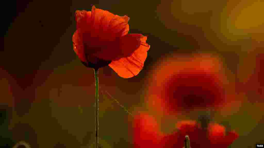 В вечерние часы, когда поле маков слегка подсвечивается лучами заходящего солнца, получаются особенно красивые снимки.