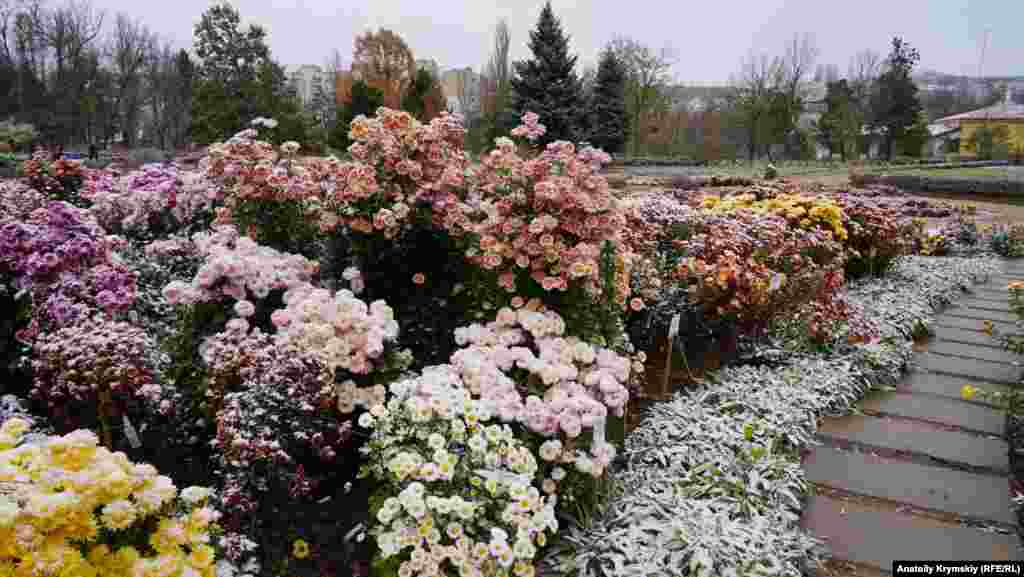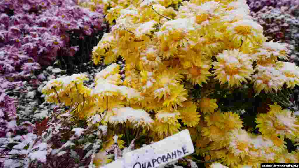 Хризантемы в снегу. Симферополь встречает зиму (фотогалерея)