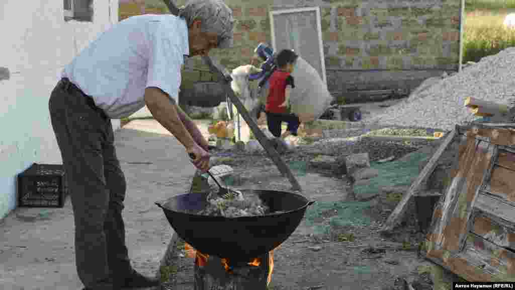В поселке Строгоновка на одном из последних ифтаров в конце священного для мусульман месяц Рамазан крымчане провели дуа в доме политзаключенного Теймура Абдуллаева, 23 июня 2017 года