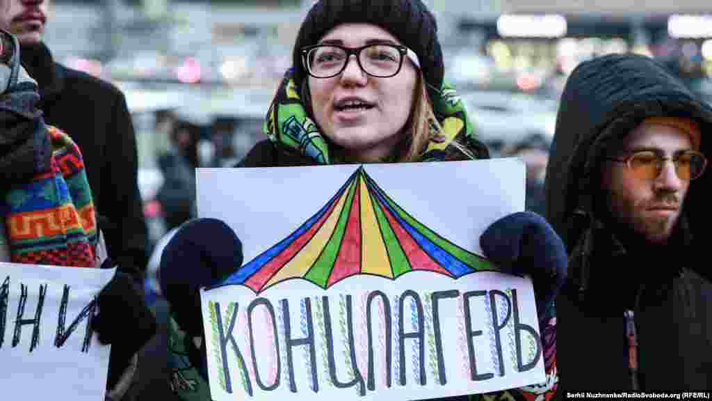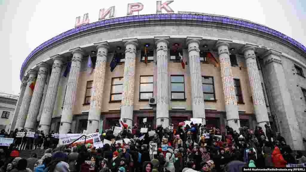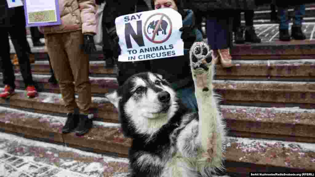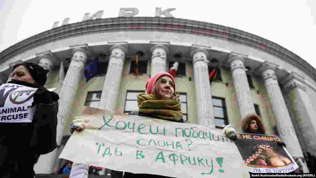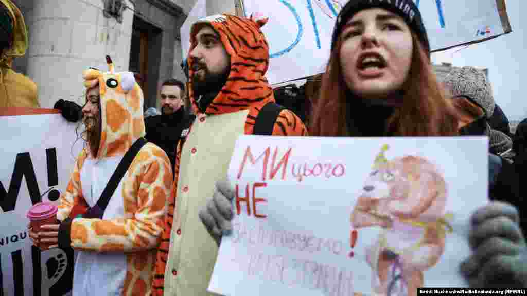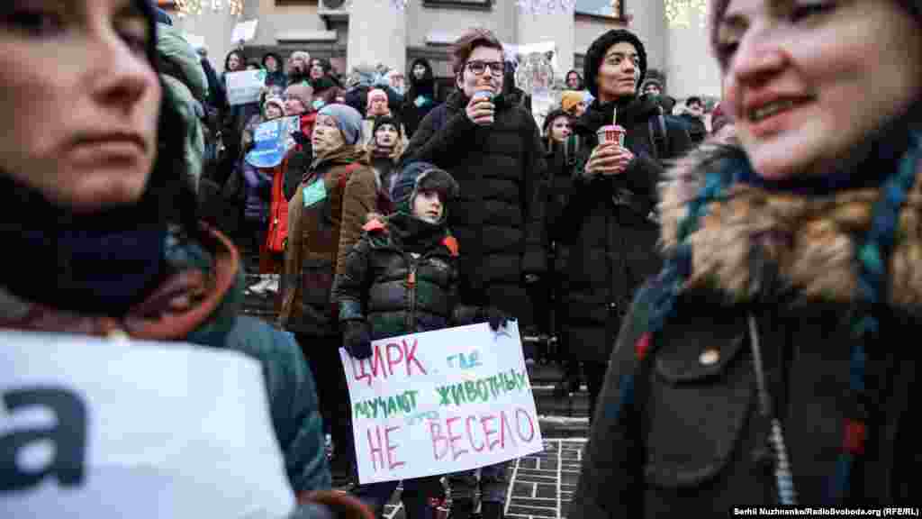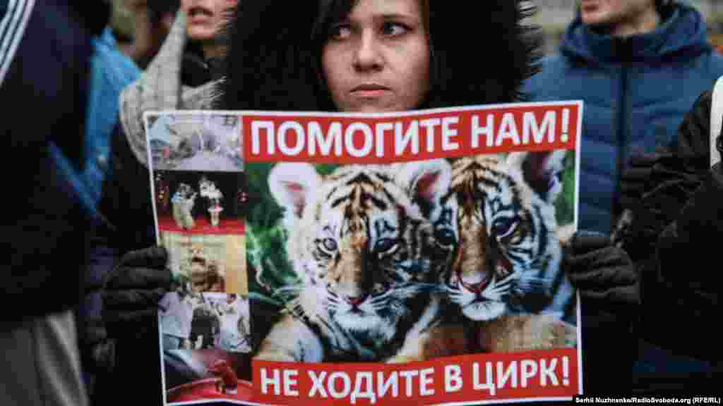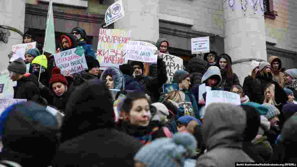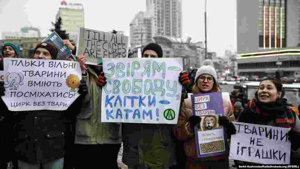 27 января в Киеве, возле здания Национального цирка Украины, около сотни активистов провели акцию против использования животных в цирковых представлениях. Активисты с плакатами и фотографиями животных в цирковых клетках требовали прекратить использовать животных в цирковых представлениях.