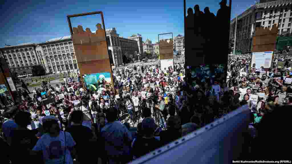 На Майдане Независимости в Киеве прошла акция «Спасем Олега Сенцова» (#SaveOlegSentsov). Основной лозунг акции – «покажи красную карточку Кремлю». Организаторы задумали ее в футбольной тематике, накануне Чемпионата мира, который в этом году будет проходить в России.