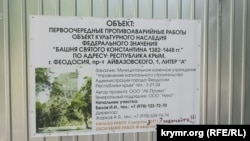 Деньги эти были благополучно освоены, а настоящая реставрация башни – второй и главный этап работ – так и не начался. Местные жители грустно шутят прямо на табличке, притороченной к забору, что ограждает башню – в том смысле, что на реставрацию потребуется еще век.