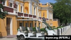 Но это легенда. Он просто, как теперь говорят, лоббировал строительство железной дороги и вокзала в Феодосии, сам за них не платил. По правую руку – несколько отличных зданий конца 18 века, раньше это были гостиница и банк, теперь же вместо банка – Дом культуры. По косвенным признакам можно судить, что не чинили его примерно с середины прошлого века, так что близко не подходите.