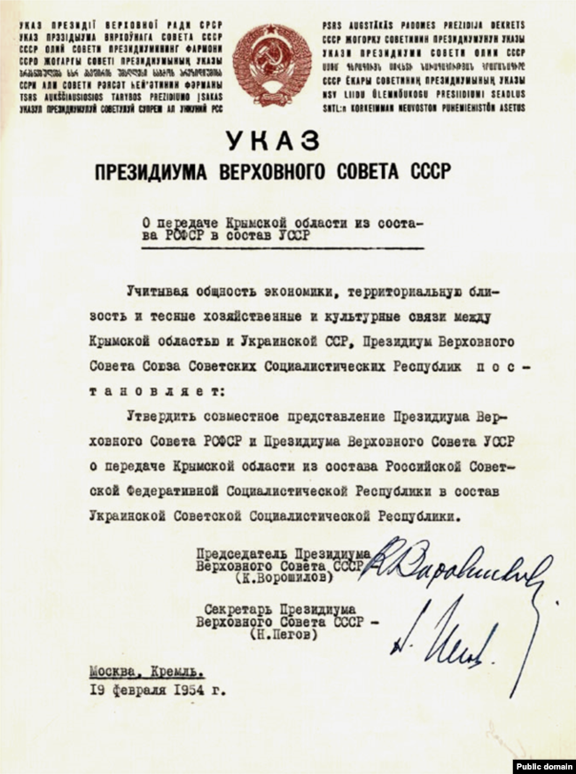 Они предлагают отменить собственно закон СССР от 26 апреля 1954 года и все последующие решения Советов и правительств Украинской и Российской Советских республик относительно передачи Крыма в состав УССР.