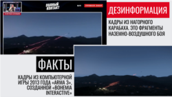 В одном он прав: война означает смерть и разрушение, но фотографии, которые он показал, не из Нагорного Карабаха и не недавние. Российские зрители прокомментировали этот материал в соцсетях и указали, что изображение взято из компьютерной игры 2013 года «Arma 3», созданной «Bohemia Interactive».