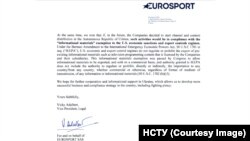 В том же письме Eurosport отметил, что «если компания захочет поставлять свой продукт на территорию АРК в будущем, то эта деятельность будет подпадать под поправку Бермана».