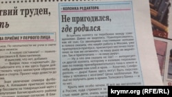 «Крымские известия» опубликовали редакторскую колонку, в которой автор Ирина Иванченко в отрицательных тонах пишет об изменениях на полуострове. «Встретила коллегу на перебежке между совещаниями. Давно не виделись. Поинтересовалась, как ее сын. Со звенящими счастливыми нотками в голосе сказала, что нашел работу в Москве, уже притерпелся-притерся, присмотрел местечко потеплее «в том же сегменте», «в нашу дыру не вернется». Так и припечатала – «в нашу дыру». – Ну а что она сказала не так? – интересуется другой коллега, которому я изливаю переживания по поводу пренебрежительного тона к земле и небу, дающим нам хлеб и кров. – Конечно, Симферополь – дыра! Какие здесь могут быть перспективы у человека с мозгами? Цены заоблачные. Жилье не получить даже в армии. Толкового банка – и то нет. Крыть мне особо нечем».