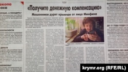 «Крымская правда» в статье «Получите денежную компенсацию» сообщает о деятельности мошенников, которые обманывают крымчан, выдавая себя за сотрудников подконтрольного Москве Министерства финансов Крыма. По словам российского министра финансов Крыма Ирины Кивико, ведомство фиксирует массовую рассылку на мобильные телефоны сообщений, содержащих вредоносные вложения. Такие СМС помогают получать доступ к банковским счетам крымчан. Неустановленные лица отправляют сообщение на телефон, где уведомляют, что Единым центром возвратов неиспользованных накоплений проведена поверка документов конкретного человека на госвыплаты, а в результате проверочных мероприятий произведен перерасчет. По итогам перерасчета гражданину якобы начислена денежная компенсация на внушительную сумму. Для того чтобы получить несуществующую выплату, необходимо незамедлительно перечислить мошенникам определенную сумму на счета подставных «доверенных» лиц якобы в качестве «госпошлины» или других «обязательных» платежей. В случае отказа оказывается моральное давление на граждан. Поступают сообщения, что причитающиеся им средства будут отправлены в бюджет государства, а дело передано в архив и не будет подлежать возврату. В крымском Минфине свою причастность к указанной рассылке отрицают, советуют черпать информацию на официальном сайте ведомства, а также в СМИ.​