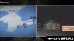 А 13 марта в YouTube появилось видео, на котором колонна российских БТР-82А 18-ой бригады едет по трассе Керчь-Феодосия, направляются, вероятно, на север Крыма, в село Воинка.