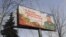 На рекламной доске объявлений цвета флага Украины написаны списки изданий террористической республики и государства-оккупанта